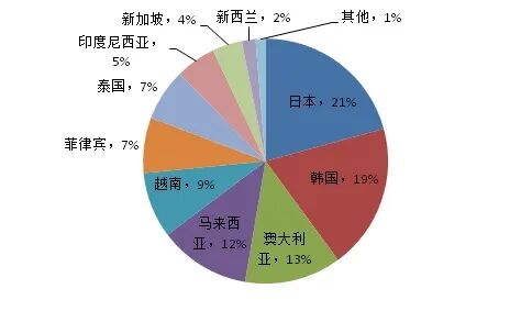 2021年,我国出口RCEP成员国玩具559.6亿元,约占我国出口玩具的18.8%。按单一国别计,我国玩具前十大出口市场中,RCEP成员占四位,分别为日本、韩国、澳大利亚和马来西亚,分别出口116.0亿元、107.4亿元、71.4亿元、67.5亿元,具体如下图所示。