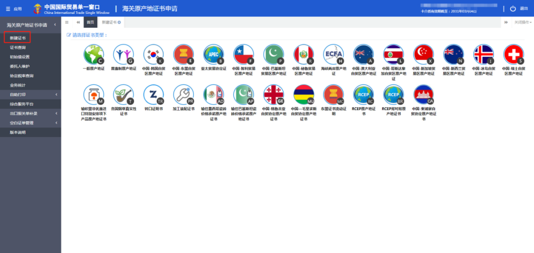企业可通过中国国际贸易“单一窗口”标准版系统导入的方式申请证书。(企业如有内部信息化系统,可实现与单一窗口系统联网对接)