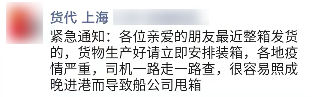 同样可能影响的还有散货进仓或空运货物进场站的操作。随着防控升级,对于物流供应链运输可能会造成一定影响。近期有出货计划的货主货代朋友们,要多留意最新情况,以免影响出货。