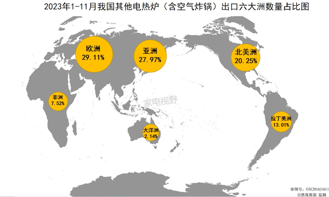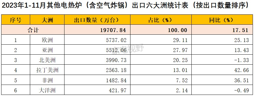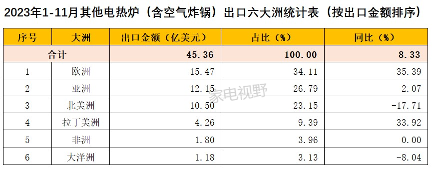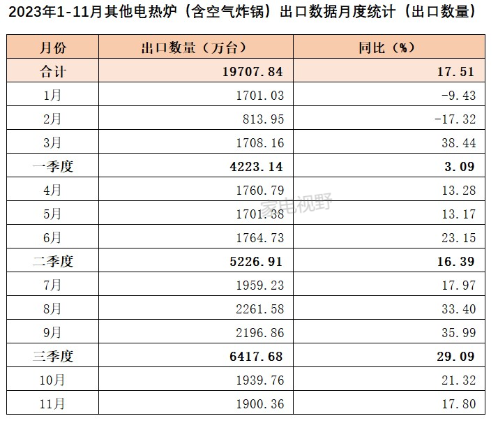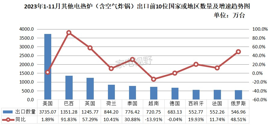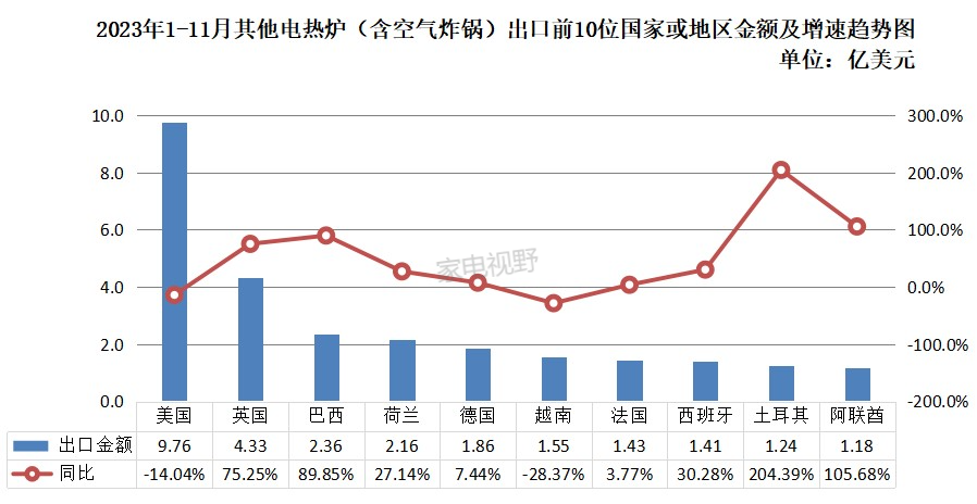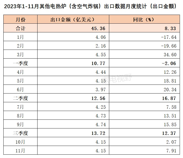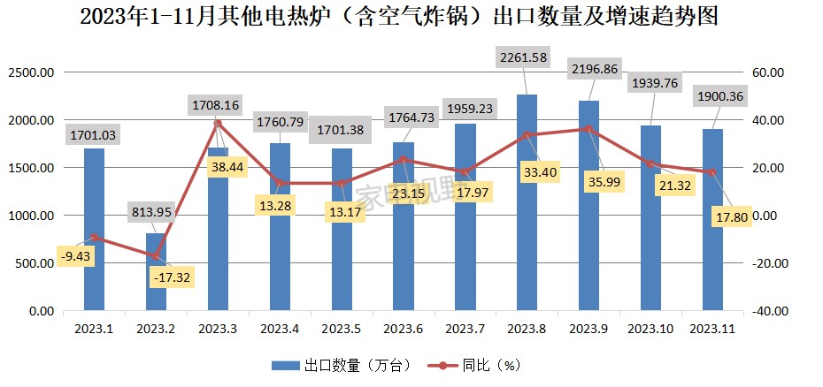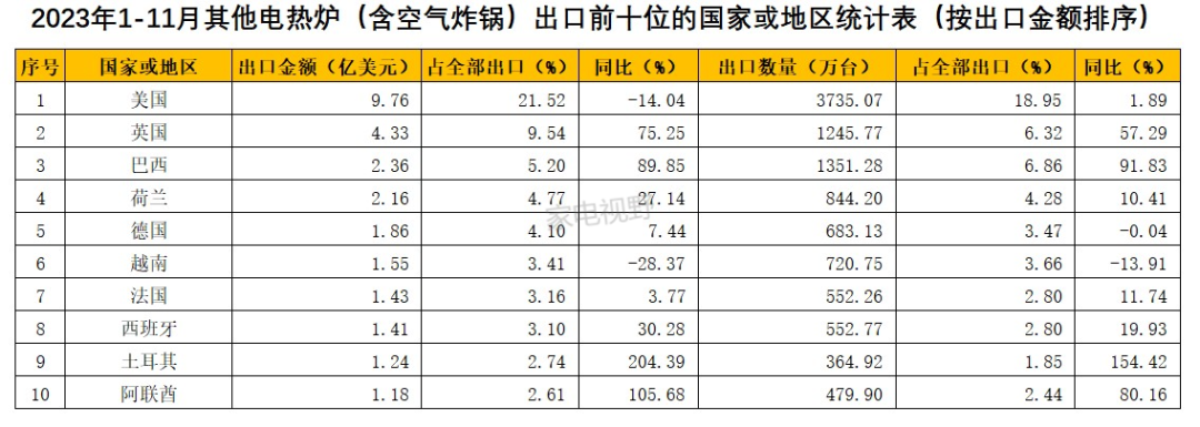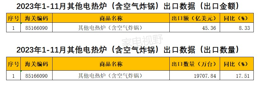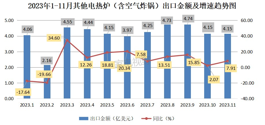 2023年1-11月我国家电出口数据概览之其他电热炉(含空气炸锅)篇