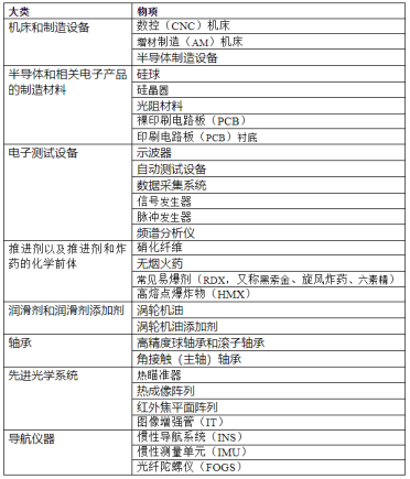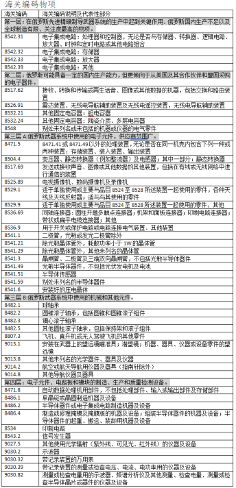 附:《根据第14024号行政令第11(a)(ii)节做出的决定》,外国金融机构直接或间接向俄罗斯出售、供应或转让下列物项,可能会被制裁。