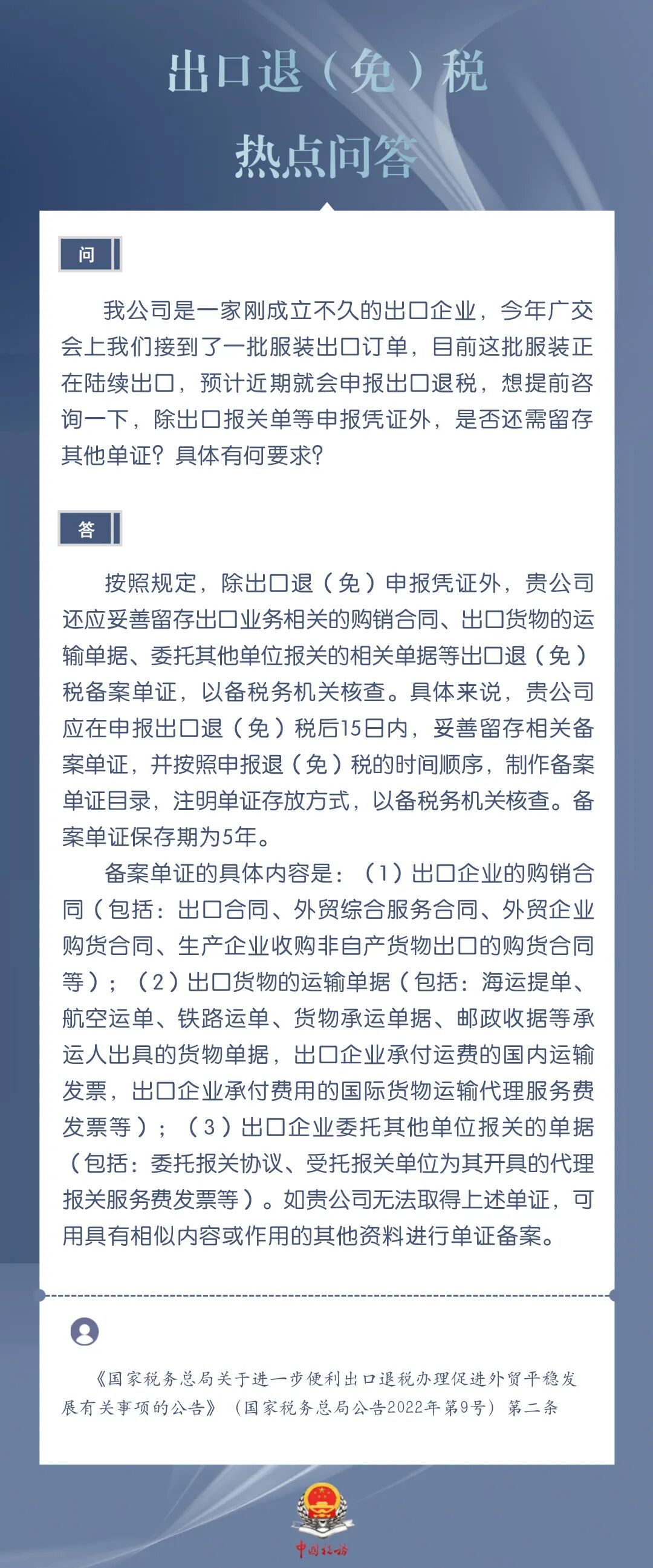 收藏 |关于出口退(免)税 这份官方整理的热点问答集锦来了