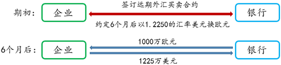 远期外汇买卖,是指按照远期外汇合约中规定的币种、数额、汇率和交割日期,于到期日进行交割的外汇之间的交易。某大型企业由于产业升级,需要进口一批设备,预计6个月后需要付汇1000万欧元,企业目前持有美元收汇资金1300万美元。考虑到欧元汇率波动较大,且企业实际持有美元资金,1月13日,企业在银行办理了本金为100万欧元的买欧元卖美元远期外汇买卖业务,交割日为7月15日,锁定汇率为1.2250。到期日7月15日,不管市场价格如何变化,企业都可以通过1.2250的价格买入欧元卖出美元,有效规避了欧元汇率波动带来的风险。