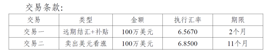 价格远优于期初6.51 的远期结汇报价。
