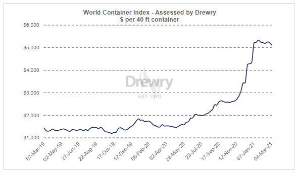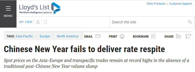 上海到鹿特丹的运费下降了286美元,达到了8188美元/FEU; 上海到洛杉矶的运费下降了130美元,达到了4261美元/FEU; 上海到热那亚的40英尺集装箱运价下跌106美元至8505美元; 而从上海到纽约的运费上涨了23美元,达到6651美元/FEU。