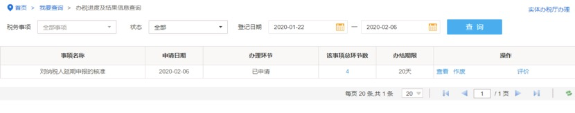 4.“办税进度及结果信息查询”模块可进行申请查看、作废等操作。