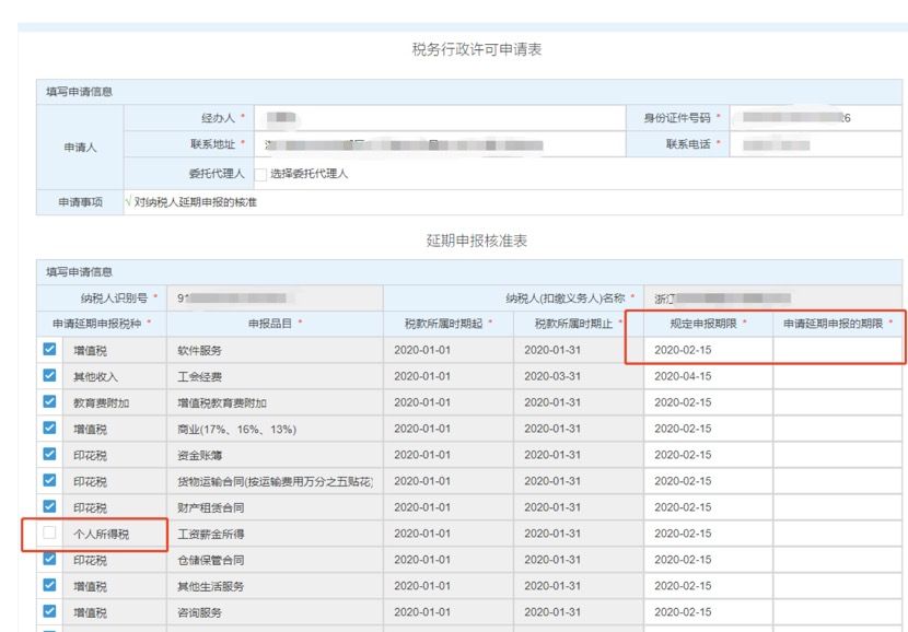 (个人所得税暂不支持在电子税务局渠道延期申报,请勿勾选!)
