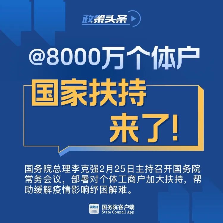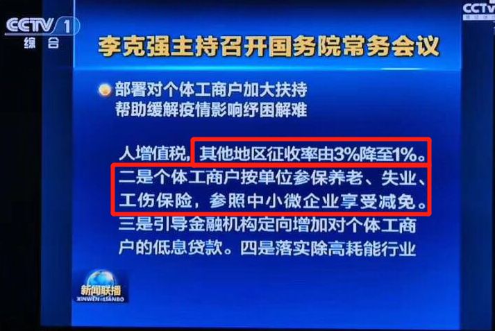 国务院昨晚刚刚明确:个体户也能按企业减免社保了,从3月1日起全体小规模纳税人增值税征收率从3%将为1%!湖北地区免征小规模3个月增值税!会计需要马上学习。国务院总理李克强2月25日主持召开国务院常务会议,推出鼓励吸纳高校毕业生和农民工就业的措施;确定鼓励金融机构对中小微企业贷款给予临时性延期还本付息安排,并新增优惠利率贷款;部署对个体工商户加大扶持,帮助缓解疫情影响纾困解难。会议指出,要认真贯彻习近平总书记重要讲话精神,按照党中央、国务院部署,统筹推进疫情防控和经济社会发展,强化“六稳”举措,扩大有效内需,努力实现全年发展目标任务。当前要更加注重稳就业特别是高校毕业生、农民工等重点群体就业。一要扩大今年硕士研究生招生和专升本规模,增加基层医疗、社会服务等岗位招募规模,加大对小微企业吸纳高校毕业生就业的支持。二要引导用人单位推迟面试和录取时间,对延迟离校应届毕业生推迟报到、落户等时限。对离校未就业高校毕业生提供2年户口和档案托管,按应届毕业生身份办理就业手续。三要积极扩大农民工就业。加大稳岗和就业补助。拓宽就地就近就业渠道。新上一批带动就业能力强的项目。重大工程建设、以工代赈项目优先吸纳贫困劳动力。会议确定了按市场化、法治化原则加大对中小微企业复工复产的金融支持措施。一是鼓励金融机构根据企业申请,对符合条件、流动性遇到暂时困难的中小微企业包括个体工商户贷款本金,给予临时性延期偿还安排,付息可延期到6月30日,并免收罚息。湖北省境内各类企业都可享受上述政策。二是增加再贷款、再贴现额度5000亿元,重点用于中小银行加大对中小微企业信贷支持。同时,下调支农、支小再贷款利率0.25个百分点至2.5%。6月底前,对地方法人银行新发放不高于贷款市场报价利率加50个基点的普惠型小微企业贷款,允许等额申请再贷款资金。鼓励引导全国性商业银行加大对小微企业信贷投放力度,努力使小微贷款利率比上年有明显下降。国有大型银行上半年普惠型小微企业贷款余额同比增速要力争不低于30%。政策性银行将增加3500亿元专项信贷额度,以优惠利率向民营、中小微企业发放。会议指出,支持吸纳2亿多人就业的8000多万个体工商户纾困,有利于稳定亿万家庭生计。为支持广大个体工商户在做好疫情防控同时加快复工复业,会议确定,一是自3月1日至5月底,免征湖北省境内小规模纳税人增值税,其他地区征收率由3%降至1%。二是个体工商户按单位参保企业职工养老、失业、工伤保险的,参照中小微企业享受减免政策。三是引导金融机构增加发放低息贷款,定向支持个体工商户。四是切实落实将除高耗能行业外工商业电价进一步阶段性降低5%的政策。五是鼓励各地通过减免城镇土地使用税等方式,支持出租方为个体工商户减免物业租金。税来税往知道大家肯定还有很多问题要问:比如想问小规模都是按季申报,这1%和3%如何申报?这三个月里边,发票中的税率栏怎么开,开专票怎么办?等等这些问题都没有明确,这里边涉及的问题太多,大家都稍安勿躁,等出了正式文件税来税往会第一时间发出来的,建议大家把税来税往置顶,这样就能学习最新的财税政策了。今年开始,这些行业小规模纳税人月超过了10万元或者季度超过了30万元,也免征增值税!为进一步做好新型冠状病毒感染的肺炎疫情防控工作,支持相关企业发展,现就有关税收政策公告如下:五、对纳税人提供公共交通运输服务、生活服务,以及为居民提供必需生活物资快递收派服务取得的收入,免征增值税。我酒店属于餐饮服务行业,属于增值税小规模纳税人,2019年季度销售额20.6万元。