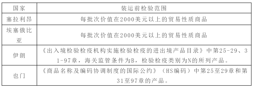 按照中国和国外政府签订的双边协议,对出口至部分国家和地区的商品需申请实施装运前检验。