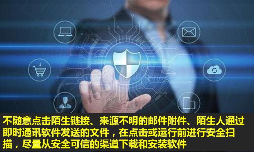 勒索病毒攻击 勒索病毒正在攻击你的网络信息系统…… 慈溪网警提醒 预防远比后期处置更应该值得重视,慈溪网警特此整理九大方法预防勒索病毒: 1、登录口令尽量采用大小写字母、数字、特殊符号混用的组合方式,并且保持口令由足够的长度,同时添加限制登录失败次数的安全策略并定期更换登录口令,防止密码被猜解。 2、多台机器不要使用相同或类似的登录口令,以免出现"一台沦陷,全网瘫痪"的惨状。 3、及时修补系统漏洞,同时不要忽略各种常用服务的安全补丁,防止被Nday的漏洞利用。 4、关闭非必要的服务和端口,如135、139、445、3389等高危端口,防止黑客进行口令密码爆破或远程连接。 5、严格控制共享文件夹权限,减少病毒利用共享文件夹进行感染传播。 6、提高安全意识,不随意点击陌生链接、来源不明的邮件附件、陌生人通过即时通讯软件发送的文件,在点击或运行前进行安全扫描,尽量从安全可信的渠道下载和安装软件,防止被中木马成为内网肉机跳板。 7、安装专业的安全防护软件并确保安全监控正常开启并运行,及时对安全软件进行更新。 8、业务数据一定要定期备份。对于重要、机密的文件数据甚至需要做容灾备份处理,到达异地数据实时备份与恢复标准。 9、在网络边界上以最小权限开放对其他安全域的网络访问控制,使得安全域内的信息系统暴露的风险最小化,在发生攻击或蠕虫病毒等侵害时能将威胁最大化地隔离,减少域外事件对域内系统的影响。