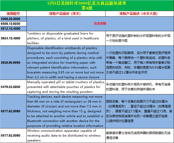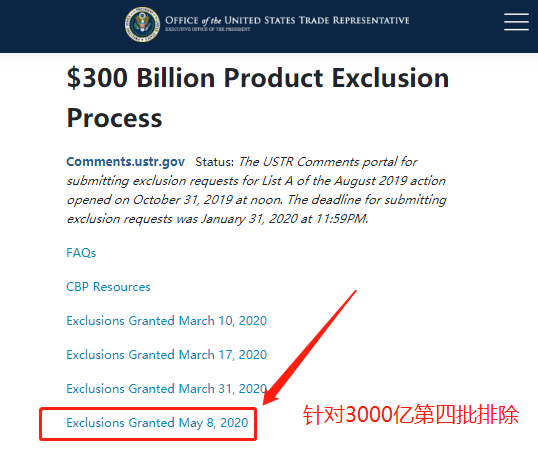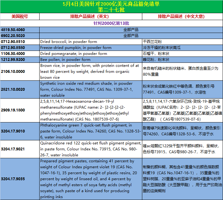 当地时间5月4日、5月8日,美贸易代表办公室(USTR)又公布了分别针对2000亿和3000亿美元中国产品加征关税的第27和28批商品排除清单。