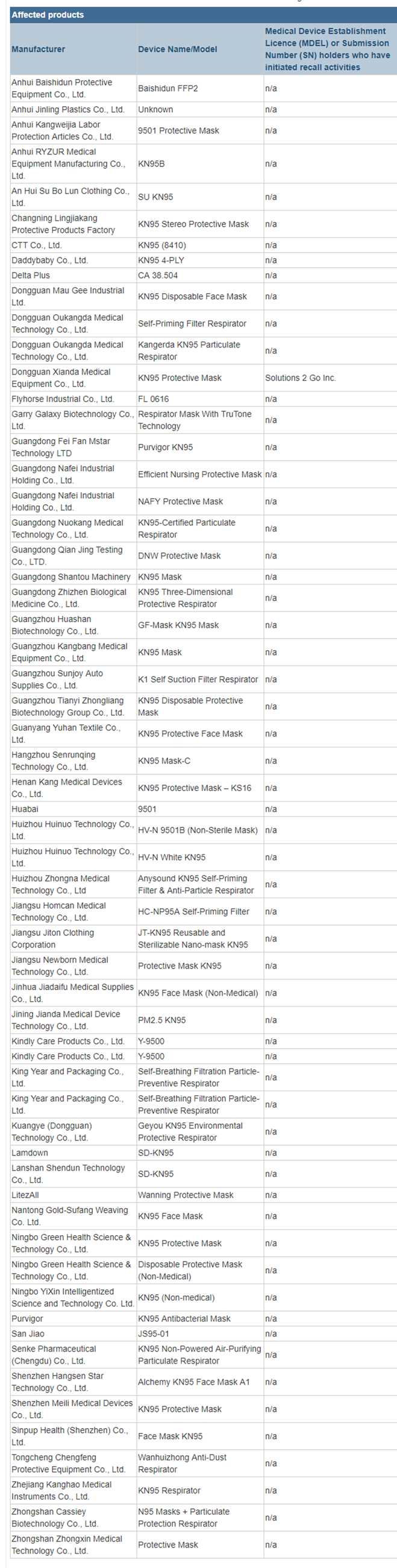 美国公布新一批86家不合格口罩企业,加拿大召回60家防护产品!附清单