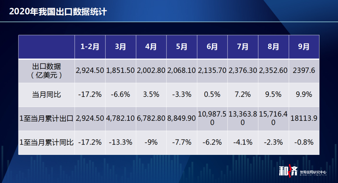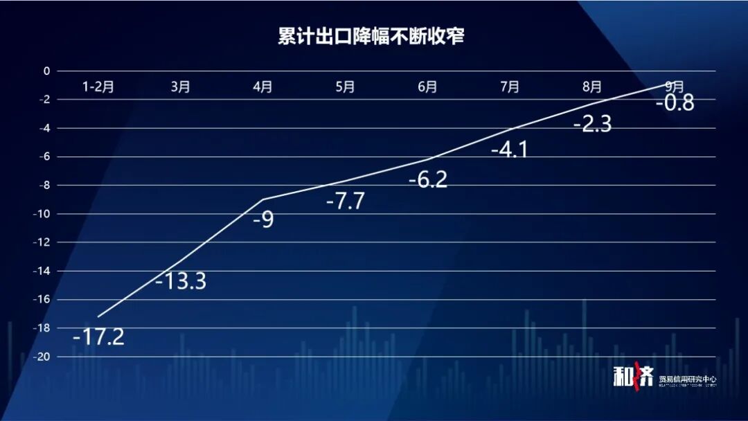 刚刚海关总署公布9月贸易账,其中9月当月出口2397.6亿美元,同比增长9.9%(美元值,全文同),进口则增长13.2%。值得标记的是,饱受疫情影响的全年出口至Q3末,已基本抹平降幅(-0.8%)。