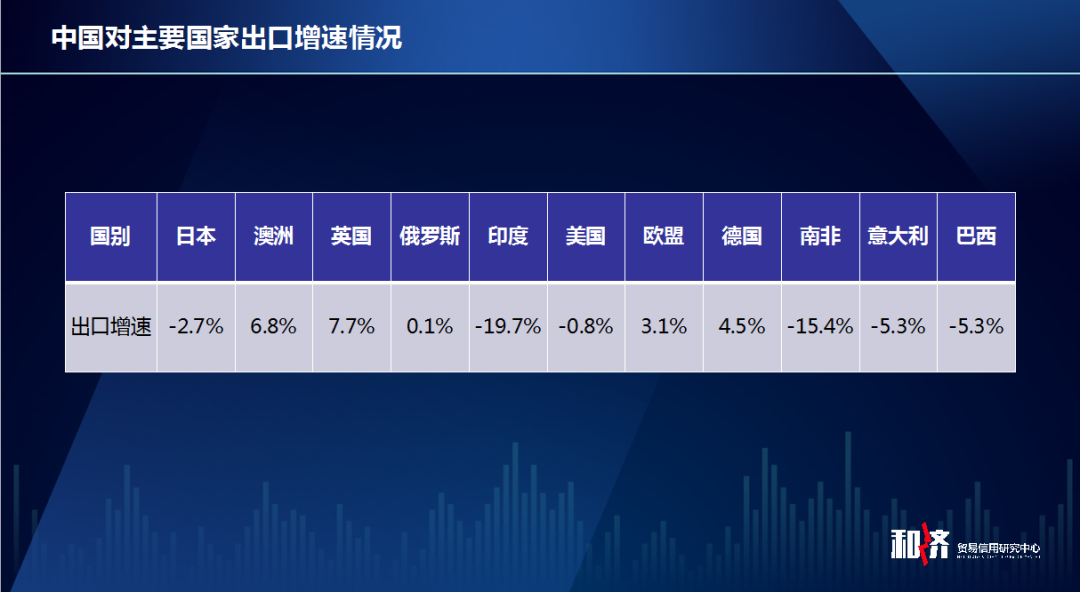 1-9月,我国出口的主要目的国当中,美国基本接近回正(-0.8%),德国(4.5%)、英国(7.7%)录得正增长,而印度(-19.7%)、南非(-15.4%)、巴西(-5.3%)、意大利(-5.3%)仍跌幅较深。